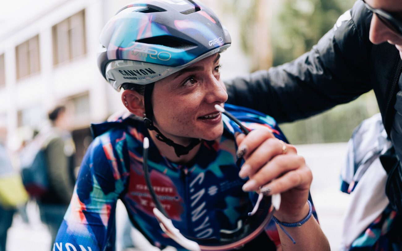Rosa Klöser, followed by Chiara, managed to regain contact with the leading group in the brief lull between the Cipressa descent and the final climb – the fabled Poggio. Around 50 riders swept through the chicane and into another uphill showdown, but this time the team was without its key climbing card.